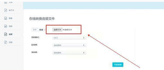 在音频转换页面,点击“选择文件”按钮,然后在电脑里找到你要转换的AWB文件,选中后打开。如果文件比较大,可能需要稍等片刻上传。