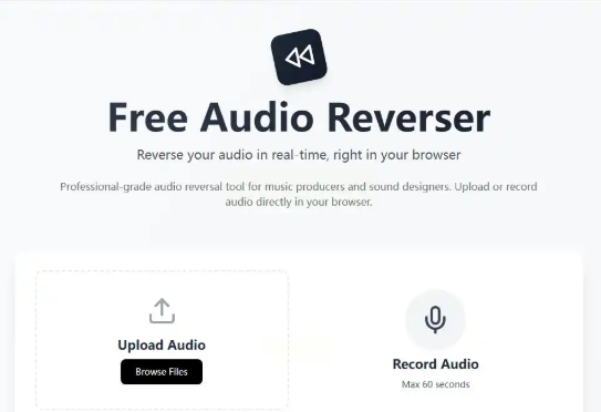 在浏览器中打开AudioReverser网站。网站界面非常简洁,主要就是一个文件上传区域。