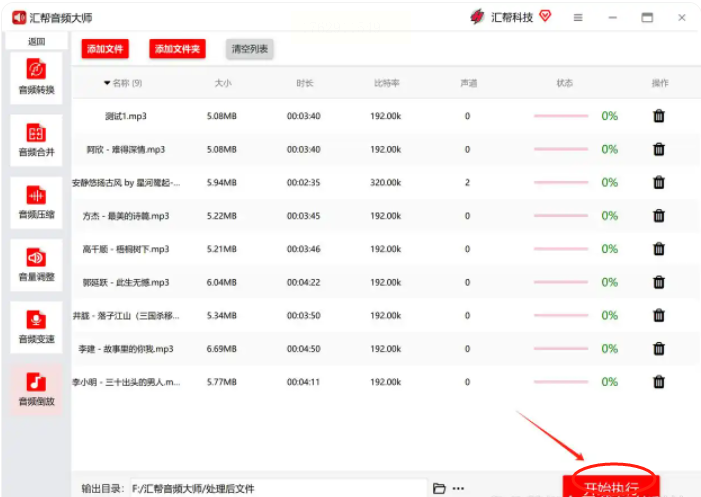 最后,点击界面上的"开始执行"按钮。软件会立即开始处理,每个文件都会显示独立的进度条。