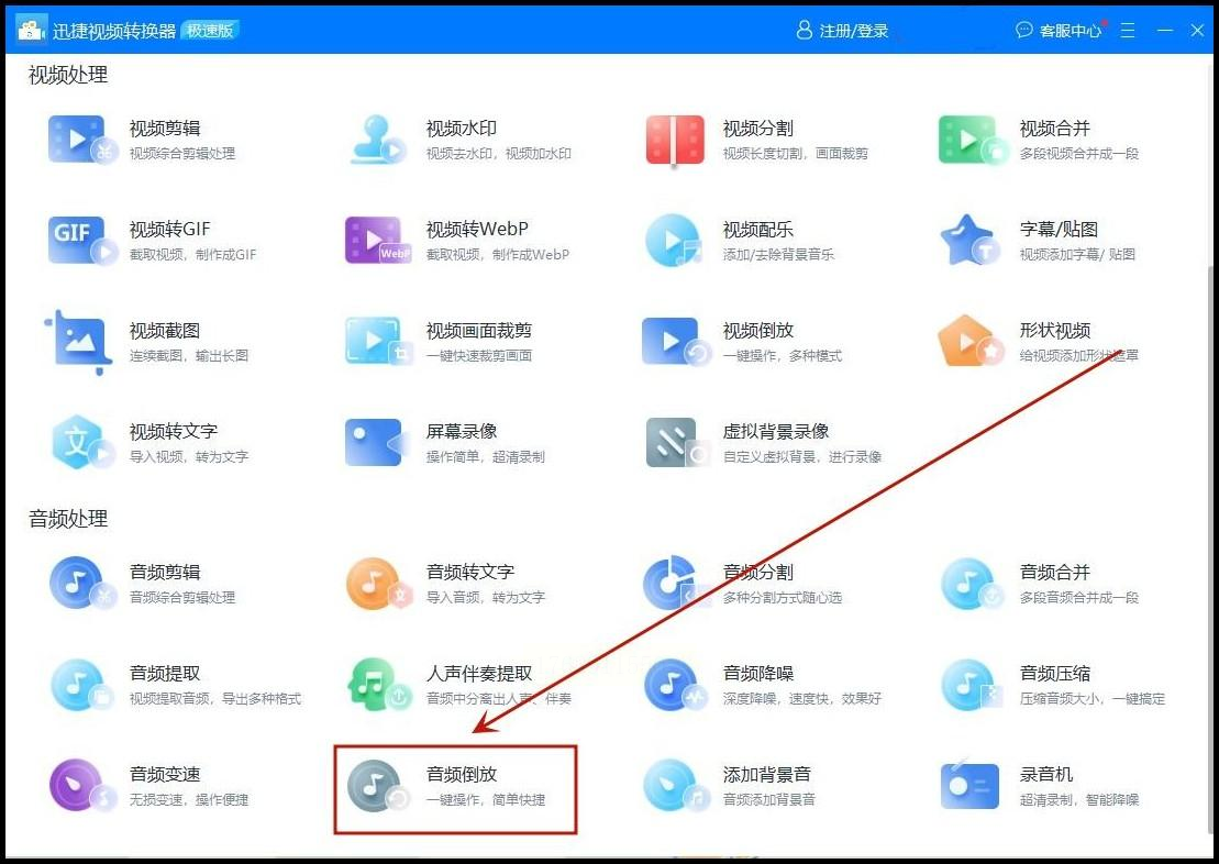 启动软件后,在主界面找到"音频倒放"功能。这个功能可能在"音频工具"或"特效处理"分类下。