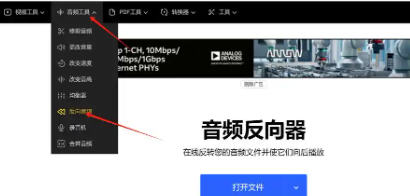 进入网站后,在工具列表中找到"反向音频"功能。这个选项可能在"音频工具"或"特效处理"分类下,需要仔细查找。