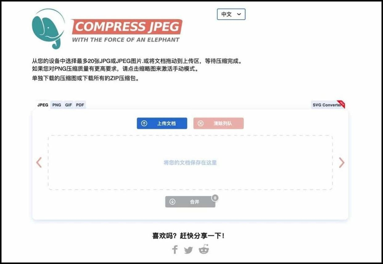 步骤二:网站中间有一个大大的上传区域,把你想要压缩的图片拖进去或者点击上传。