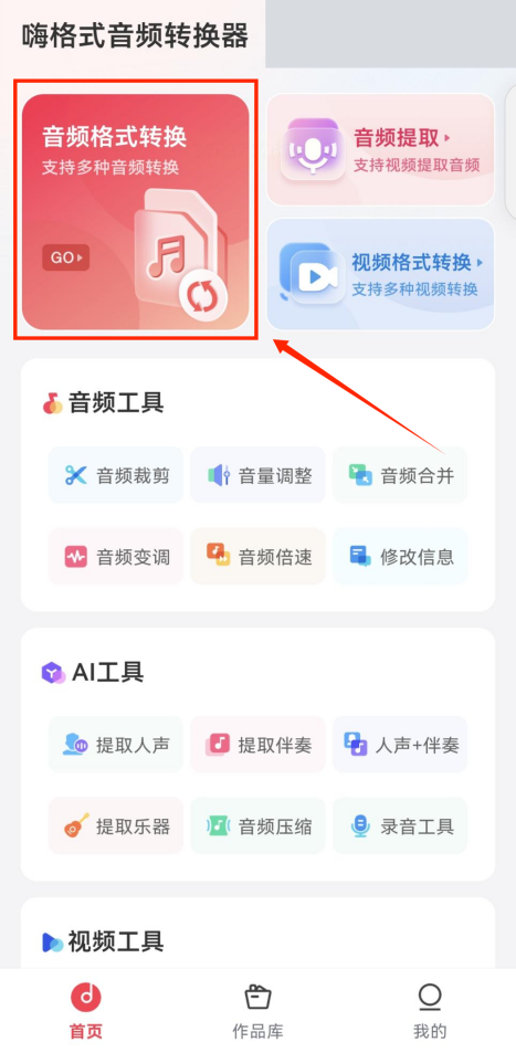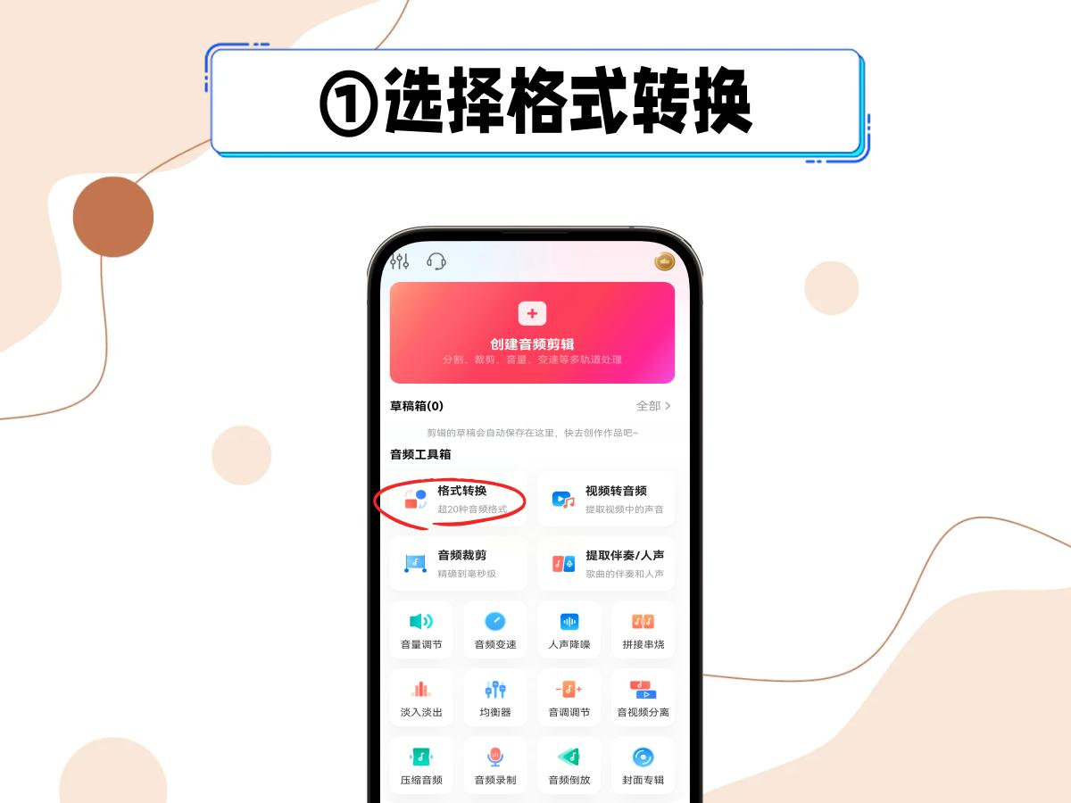 在应用商店搜索“音频快剪”(认准官方版,图标有个小剪刀的那个),安装后打开。首页会有“格式转换”的大按钮,一眼就能看到,新手也不会迷路。