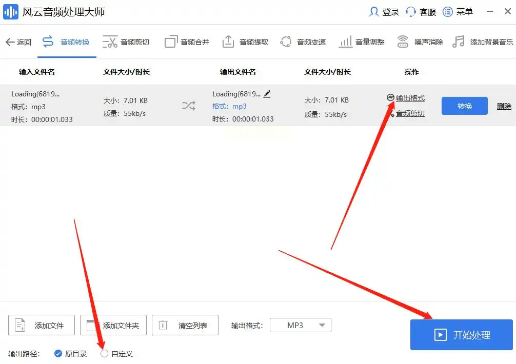 1. 进入功能区:打开软件后,点击“音频处理”-“音频转换”,切换到转换界面。