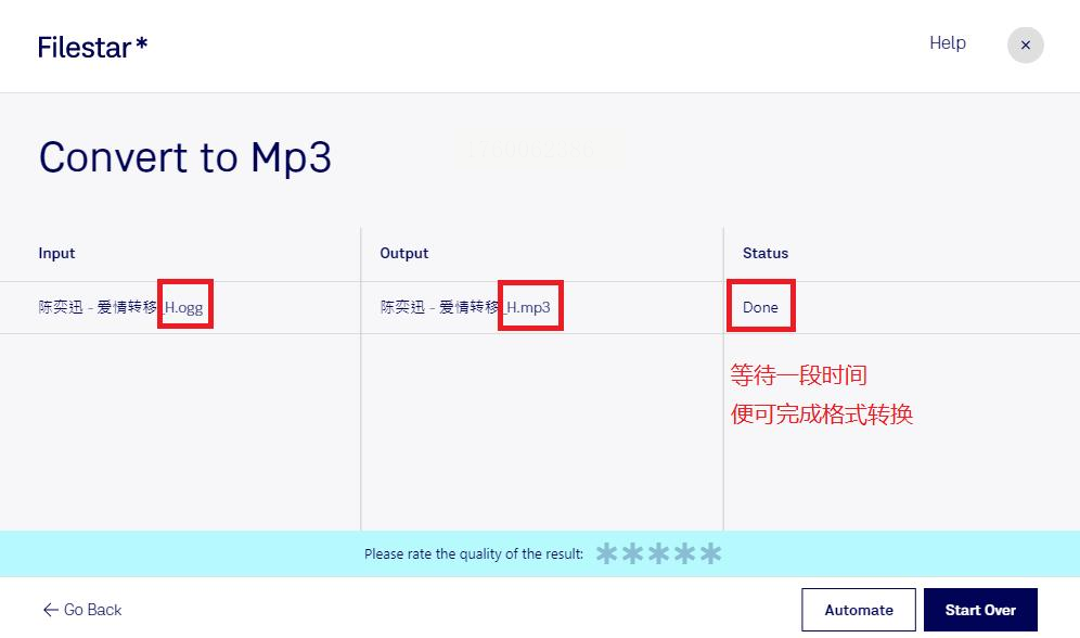 步骤五:软件开始转换,你会看到进度条。转换完成后,软件会提示你。它会在你设置的输出目录里生成一个新的MP3文件,原来的OGG文件仍然保留,不会受影响。