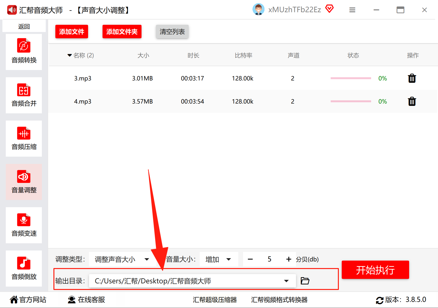 6. 开始处理:点右下角“开始执行”按钮,软件就会自动处理所有文件,进度条走完后,去你选的文件夹里找处理好的mp3,听听看是不是音量都一样啦!