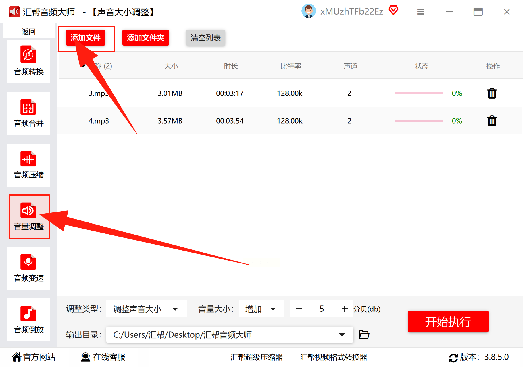 2. 添加文件:打开软件后,点左上角“添加文件”,可以选单个mp3文件,也可以直接拖整个文件夹进来(适合歌单、专辑等批量处理);