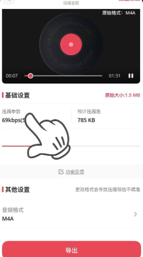 * 压缩比滑块:这个很直观,往左滑是更高压缩比(文件更小,音质损失可能更大),往右滑是更注重音质(文件压缩幅度小)。你可以先放中间。