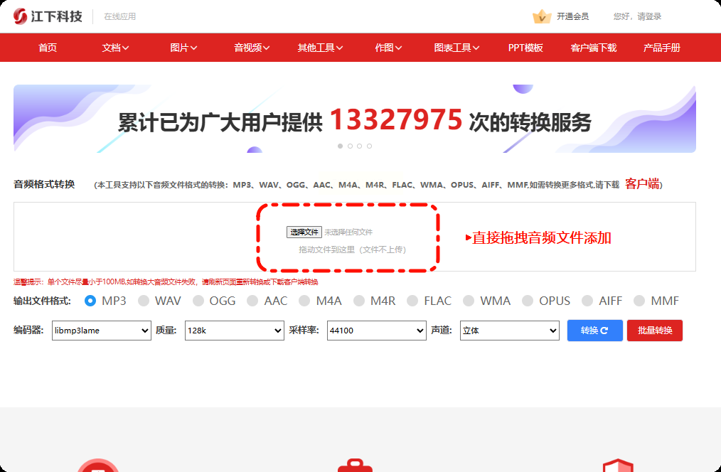 直接在浏览器搜索“江下科技在线音频转换”,进入后选择「音频格式转换」。