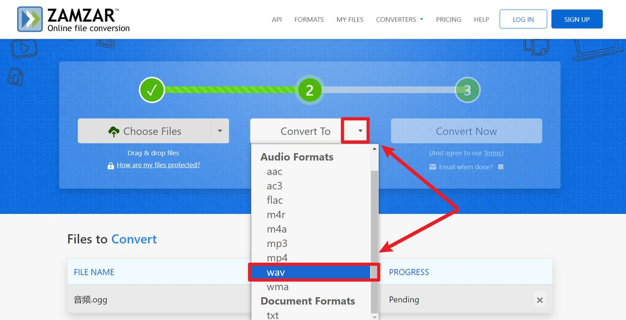 Zamzar支持超过1200种文件格式的转换,音频处理功能稳定,适合处理各类特殊音频文件: