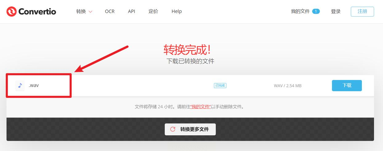 点击“转换”按钮后,等待系统处理(根据文件大小需1-5分钟),处理完成后点击“下载”即可获取WAV文件。