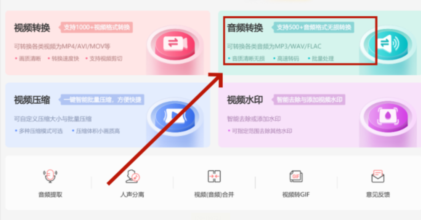 2. 打开软件:安装完在桌面点图标启动,首页直接点「音频转换」功能,像切菜一样简单!
