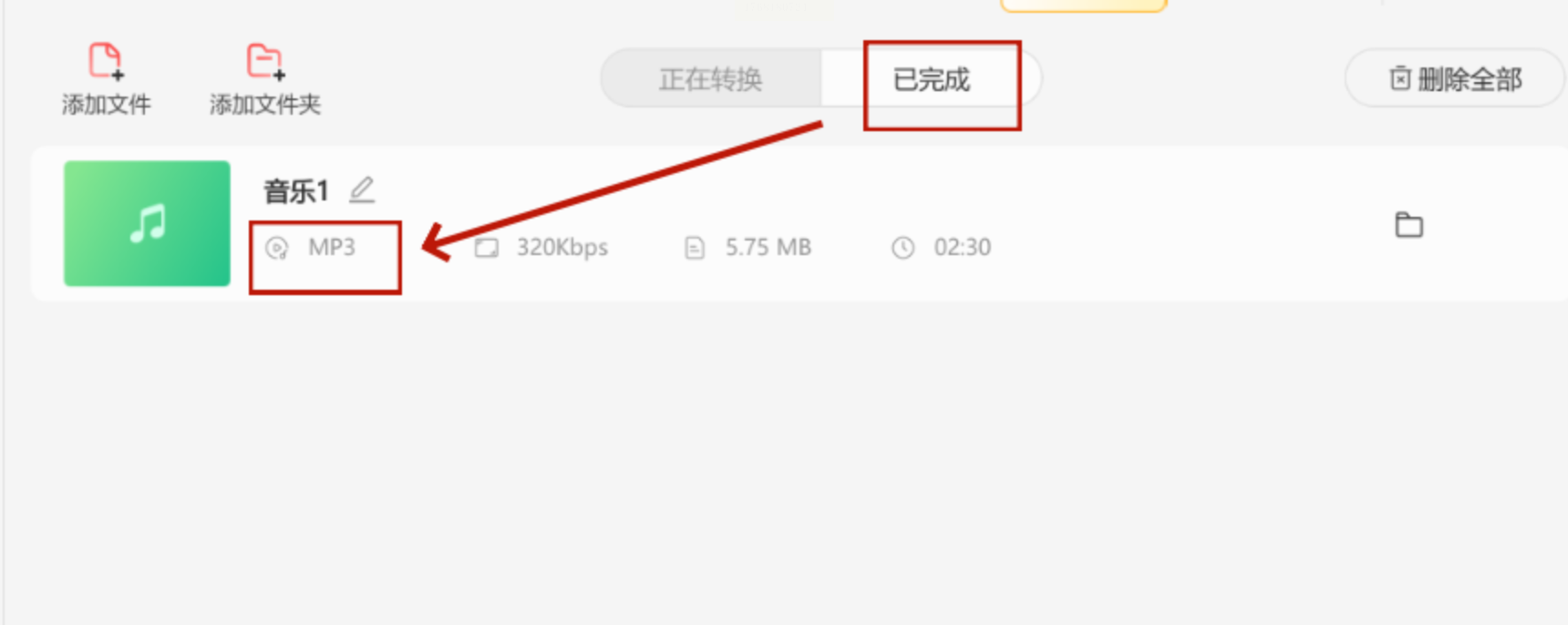 3. 开始转换:设置完点「转换」,进度条会显示转换速度,等全部变绿就大功告成,直接去输出文件夹找MP3~