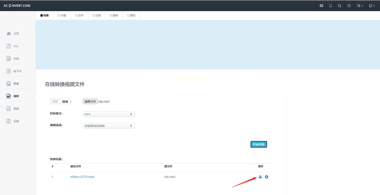 步骤六:转换完成后,页面会提供下载链接,点击即可将生成的MP4视频保存到本地。请注意,涉及隐私的敏感音频文件,谨慎使用在线工具。