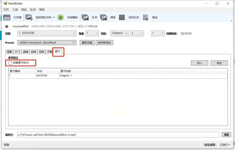 步骤五:选择输出路径,然后点击“开始编码”按钮。HandBrake会开始工作,将带有画面的音频文件封装成MP4。