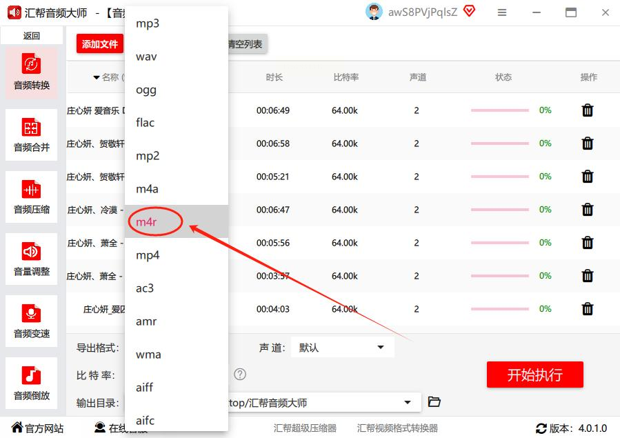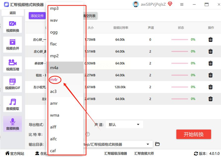 在“输出格式”下拉菜单里,找到“音频”分类,选“M4R”。有些软件可能还要在下面选具体的编码格式,一般保持默认就行,别乱改。