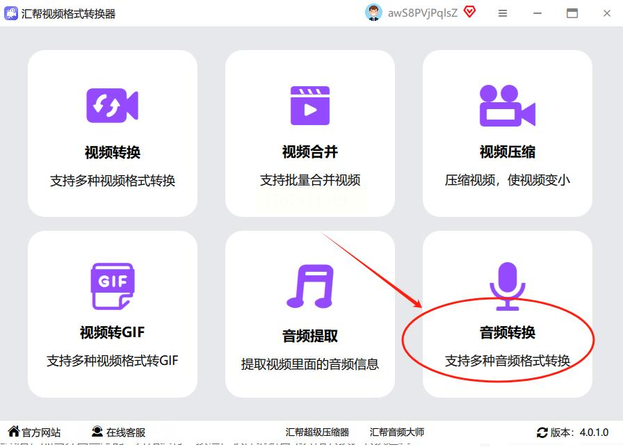 打开软件后,主界面上找“音频转换”选项,图标一般是个小音符,点进去。