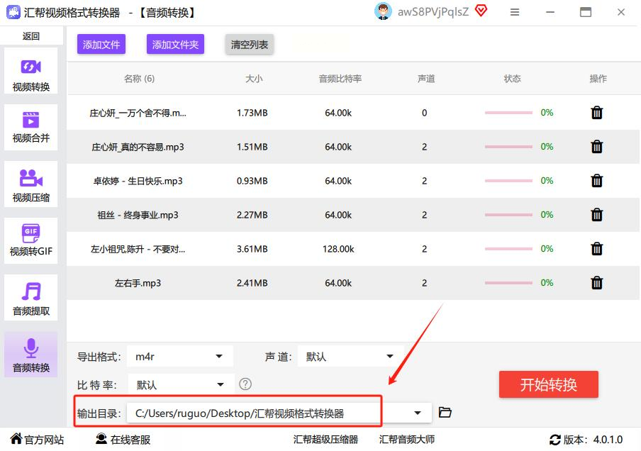 点右下角的“开始转换”按钮,等进度条走完。转换完会有提示音,这时候直接点“打开文件夹”,就能看到刚生成的M4R文件啦!传手机里就能当铃声了~