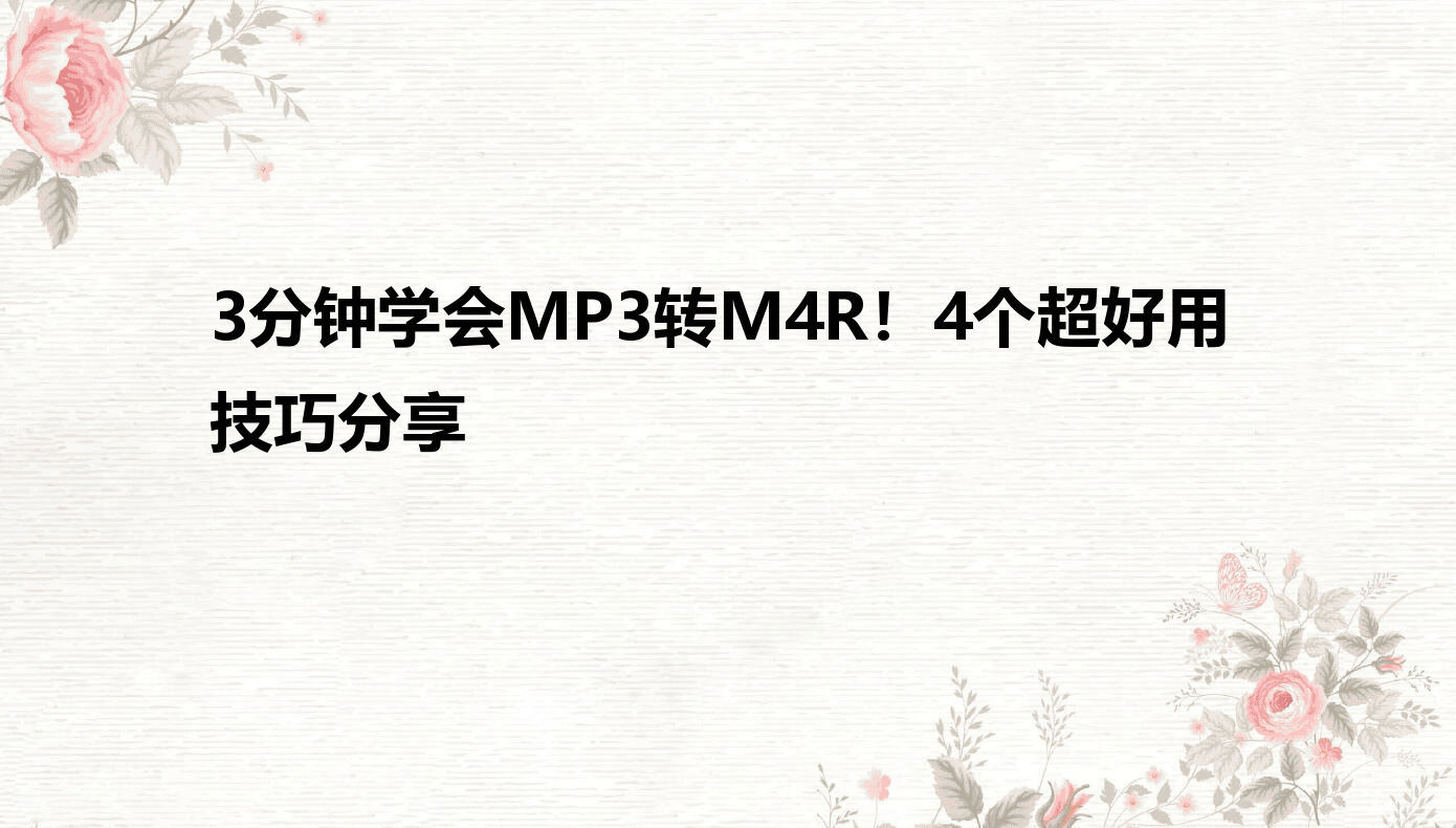 还在为找不到合适的手机铃声烦恼吗?今天教你用4种方法把MP3转换成iPhone专用的M4R格式,不管你是电脑小白还是音频达人,看完这篇就能轻松搞定铃声转换。文章会拆解每个步骤,连参数设置都给你说清楚,保证看完就能上手操作,不用再到处找教程啦~