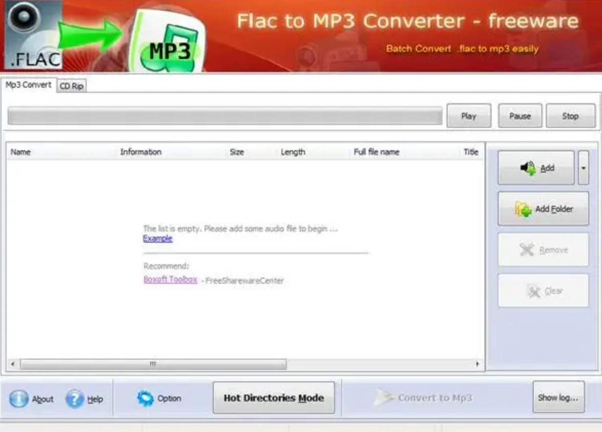 下载Boxoft Free FLAC to MP3 Converter,完成安装后打开软件。