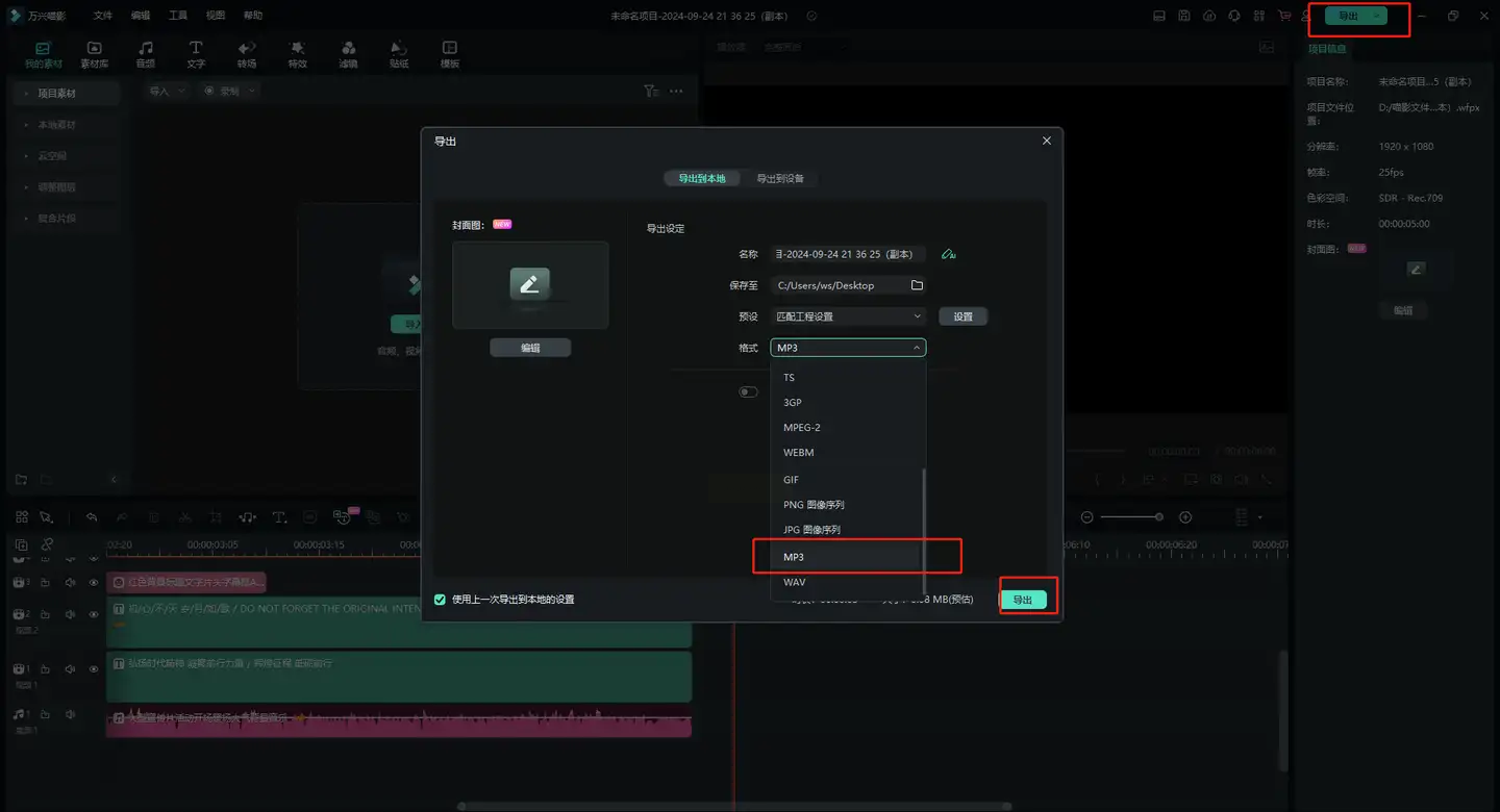 步骤二:导出音频设置