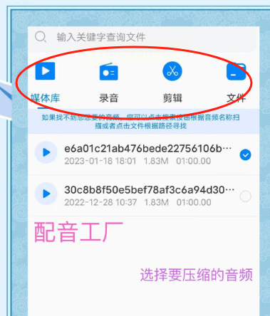 接着,按提示从你的手机里选择想要压缩的音频文件。可以选一个,也可以多选几个进行批量处理。