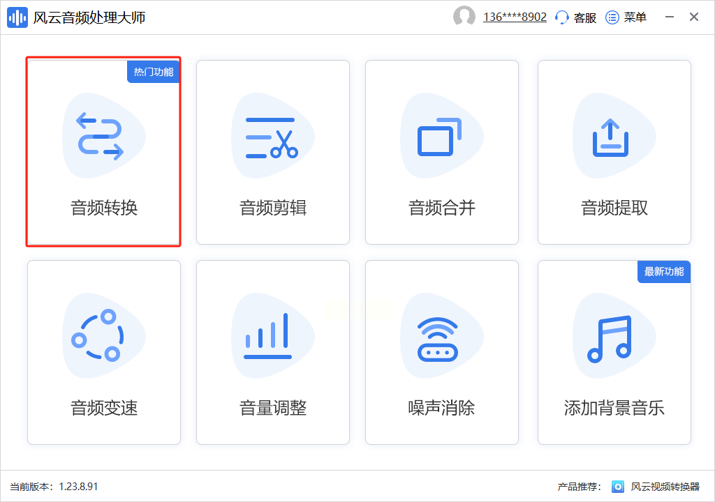 步骤一:启动软件后,在主页面上找到并点击“音频转换”功能模块。