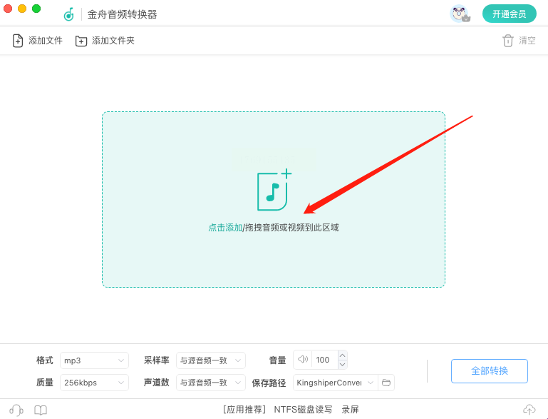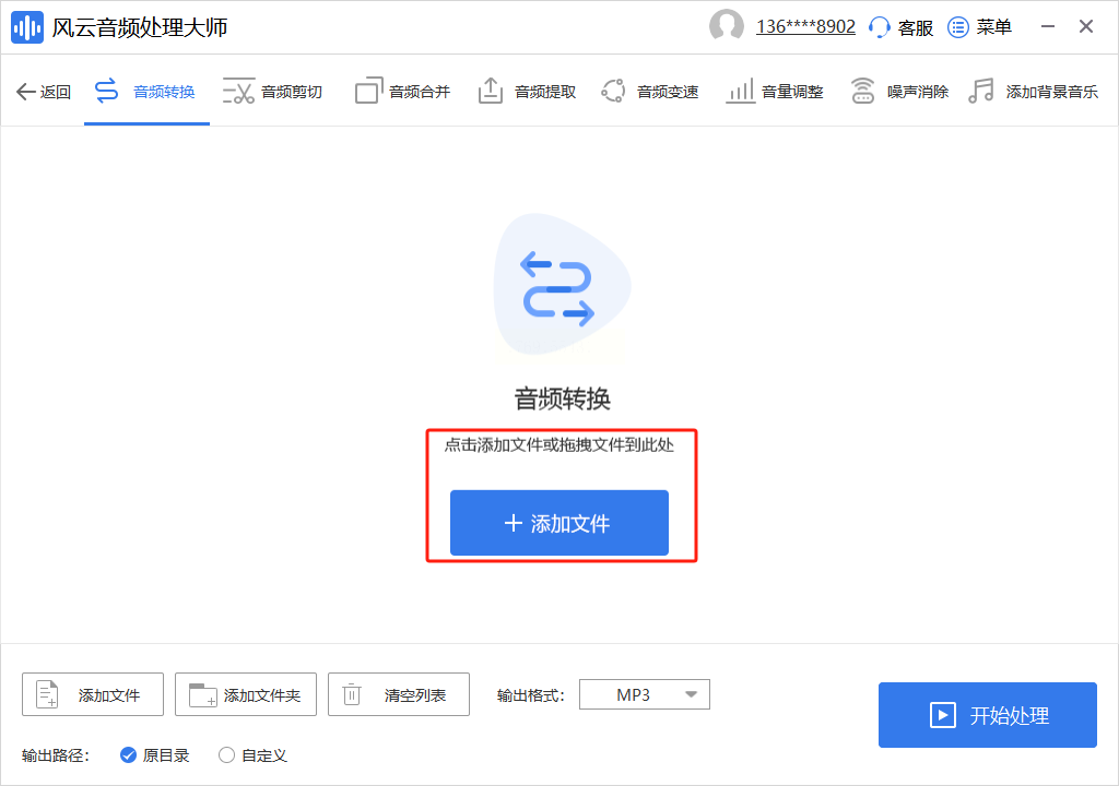 在软件主界面,清晰定位并点击“音频转换”功能。进入转换页面后,你可以通过点击“添加文件”或更简单的拖拽方式,将OGG文件放入工作区。