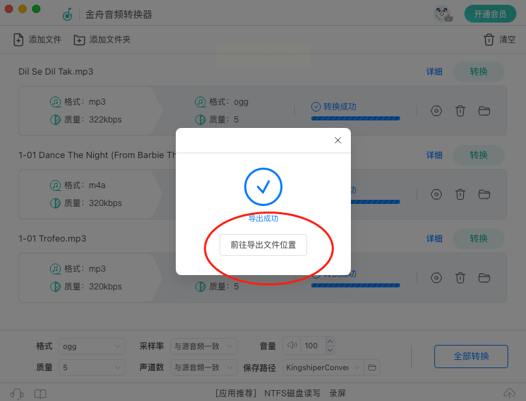第四步,转换完成后,点击“前往导出文件位置”,系统会自动打开文件夹,让你立刻看到转换好的MP3文件。