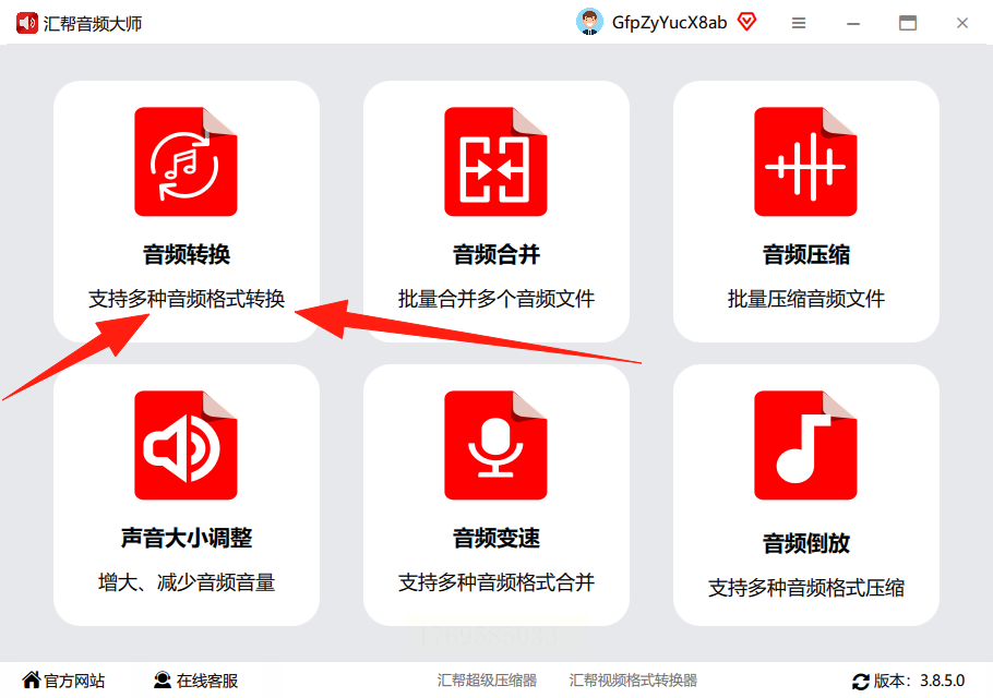 首先请去官网下载汇帮音频大师,安装完成后双击图标打开软件。主界面会清晰显示“音频转换”功能入口,点击进入转换模块。