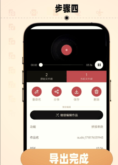然后点右上角的“完成”,再点“共享”选“导出为音频”,就能保存到手机里啦!