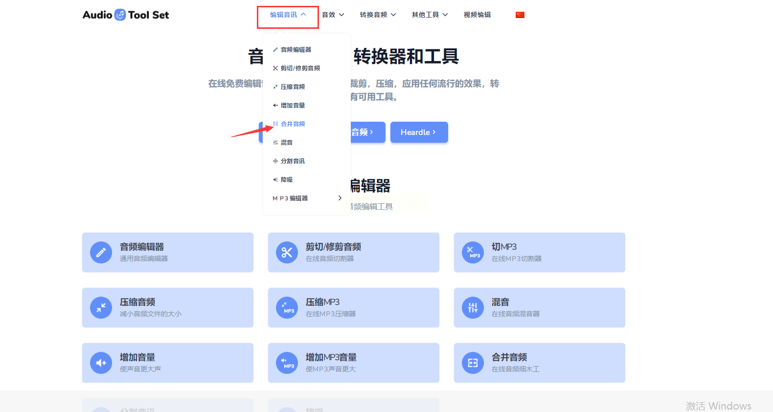 2. 首页点“编辑音讯”,然后选“合并音频”功能。