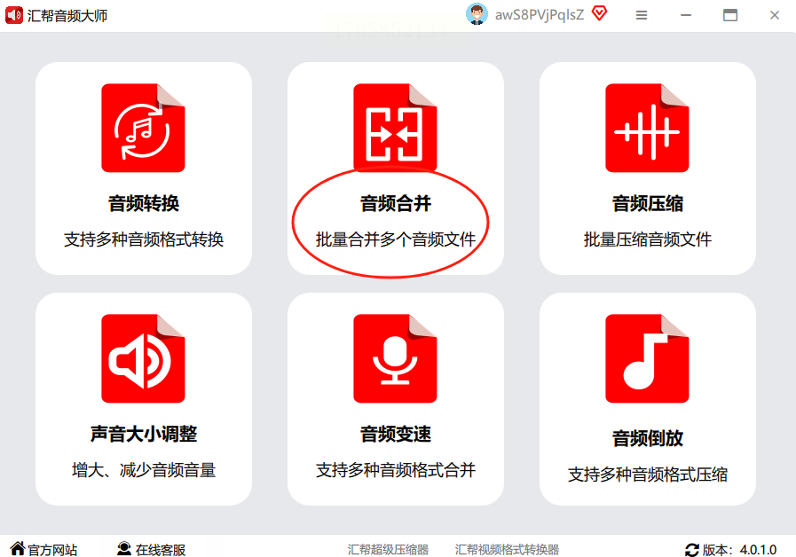 第一步:先把软件下好装到电脑里,打开后在界面里找“音频合并”这个功能,点进去就行。(找不到的话,在功能列表里扫一眼,一般都在“音频处理”那一块)
