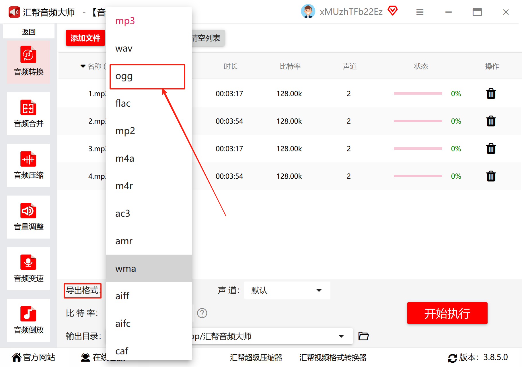 3. 选择输出格式:在格式列表中找到“OGG”选项并勾选,可同时选择多个文件进行批量转换。