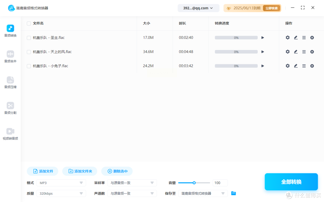 2. 导入文件:直接将FLAC文件拖入“待转换列表”,支持文件夹批量导入,软件会自动识别格式