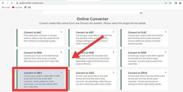 3. 选择MP3输出格式:在音频转换页面中,向下滚动找到“Convert to MP3”选项并点击。