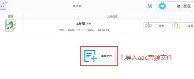 2. 导入文件:支持两种导入方式——点击“添加文件”按钮逐个选择,或者直接拖拽文件到软件窗口。与汇帮类似,也支持批量导入多个AAC文件,适合处理多个音频文件的情况。