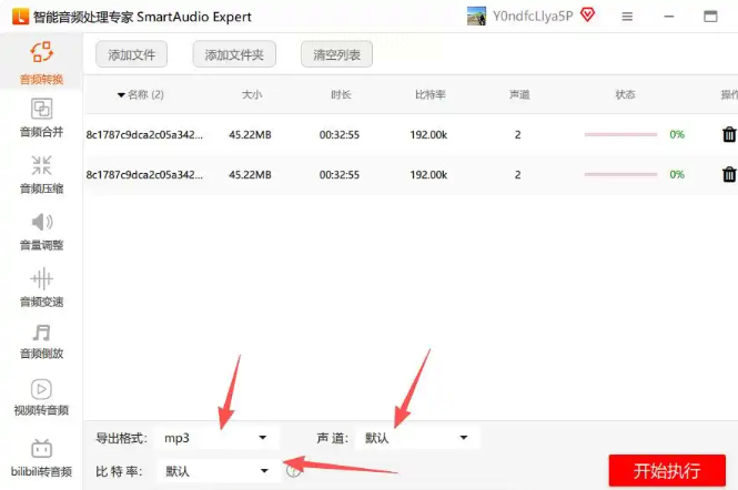 3. 设置输出格式:在格式下拉菜单中选择“MP3”,软件会自动显示相关参数选项。声道默认选择“双声道”即可满足大多数需求,如果需要处理单声道音频(比如语音类文件),可以手动调整为单声道。