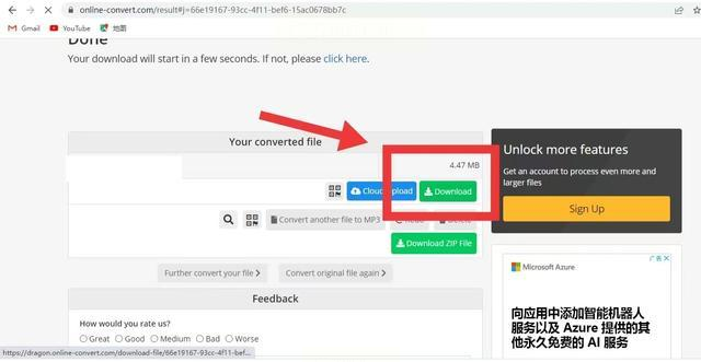 5. 开始转换:点击“开始转换”按钮,软件会开始处理文件,转换进度会显示在界面上。完成后会显示下载链接,点击下载转换后的MP3文件。