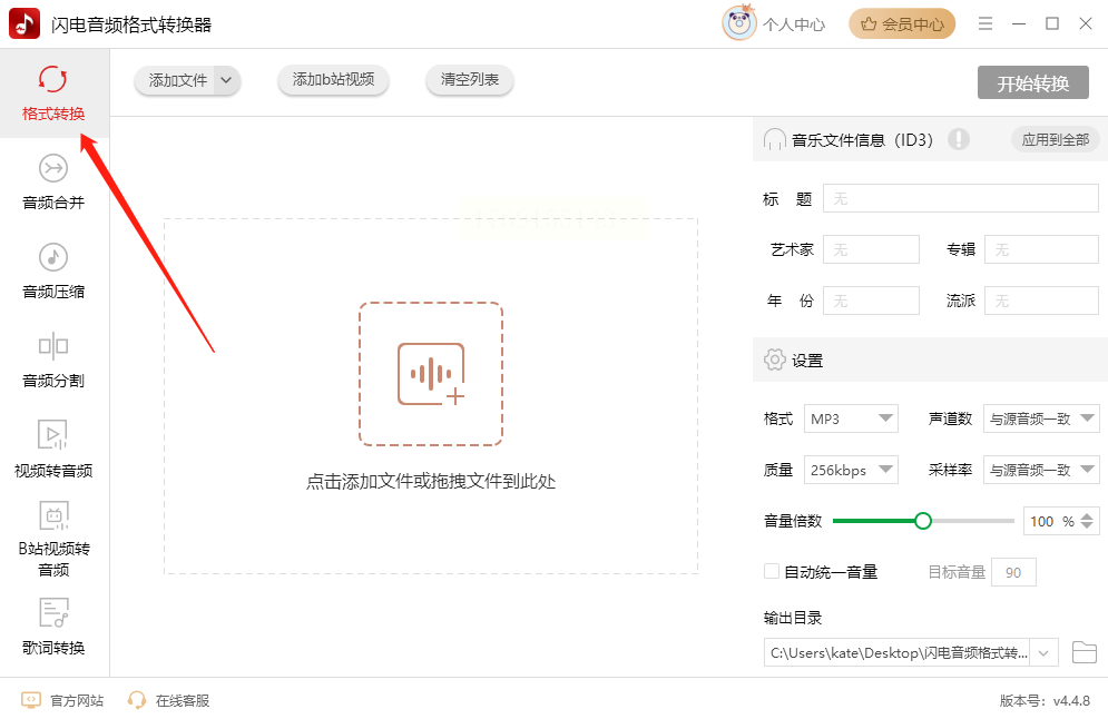 1. 进入转换界面:打开软件后,在主界面左侧功能栏中找到“音频转换”选项,点击进入转换专区。