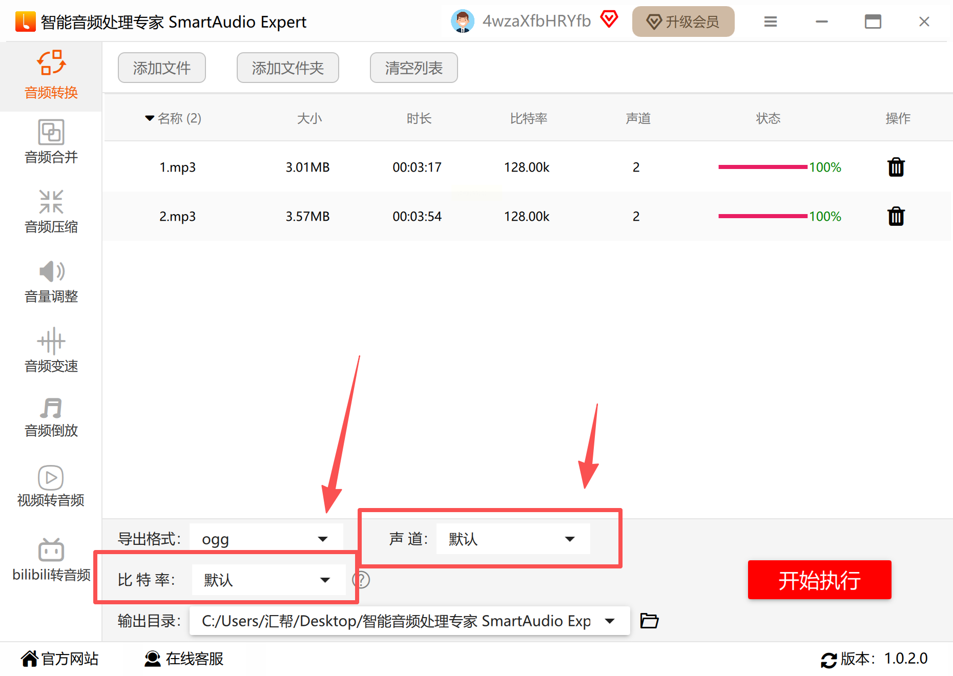 2. 格式设置:在格式下拉菜单中选择“OGG”,此时软件会自动保留原文件的采样率等参数,也可手动调整比特率。