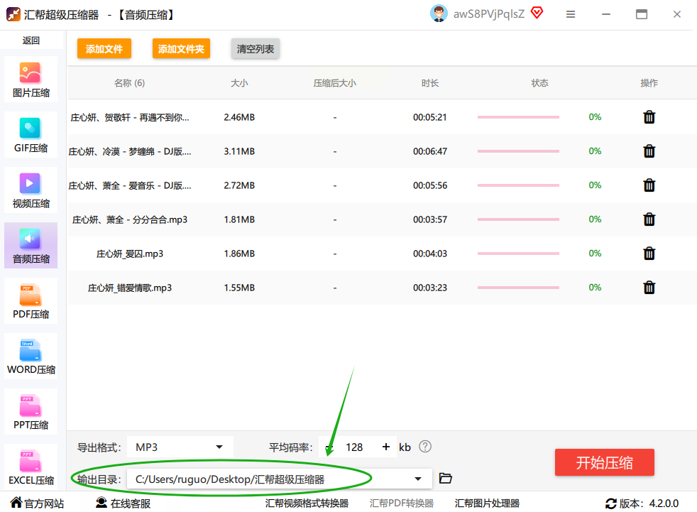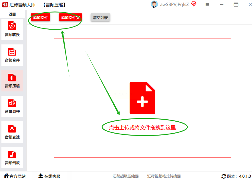 在你的电脑上打开“汇帮音频大师”这个软件。进去之后别眼花,它的界面通常很清晰,你直接找“音频压缩”或者类似字样的功能按钮,点进去就对了。这就是咱们的主战场。