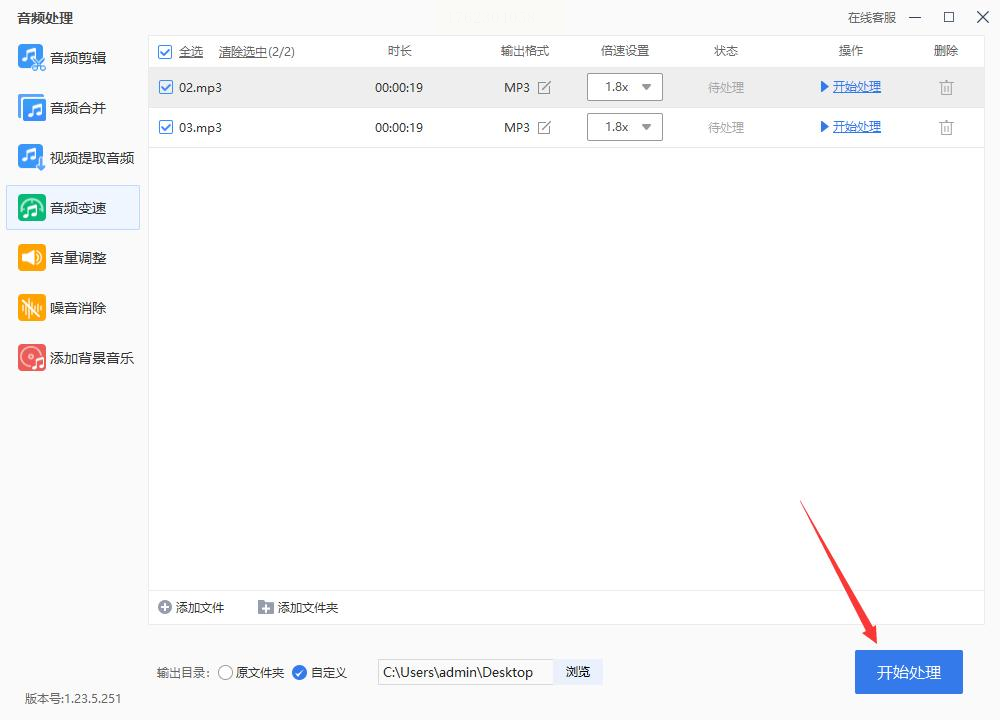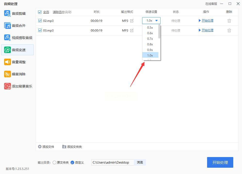 4. 导出处理结果:设置完成后点击【开始处理】,软件会自动完成所有文件的变速转换。处理完成后,可在指定的输出文件夹中找到所有变速后的音频文件。