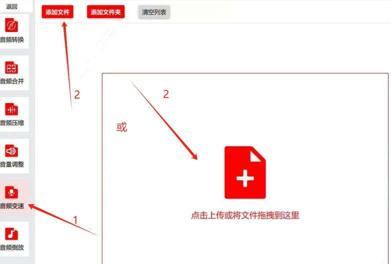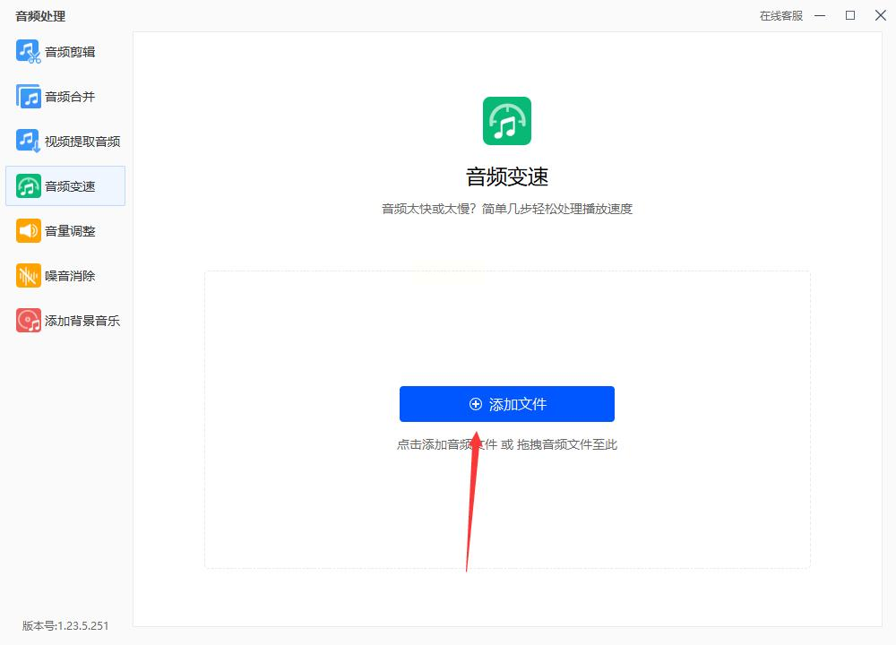 2. 添加音频文件:点击界面左上角的【添加文件】按钮,或直接将需要变速的音频文件拖拽到软件界面中,支持批量导入多个音频文件。