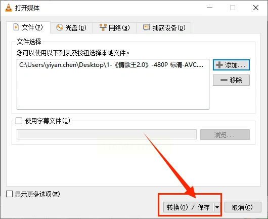 步骤1:打开VLC播放器,点击顶部菜单栏的"媒体",选择"转换/保存"。