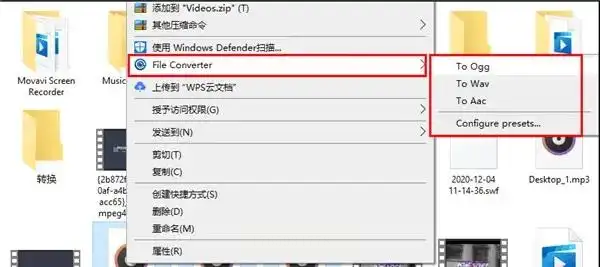 步骤二:在本地文件夹找到需要转换的m4a文件,右击文件选择File Converter的【to MP3】功能,开始格式转换。