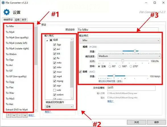 步骤一:下载并启动File Converter软件,在首页界面中对输出格式和输入格式进行预设,设置输出格式为【to MP3】,输入格式选择m4a格式,也可全选所有音频格式。