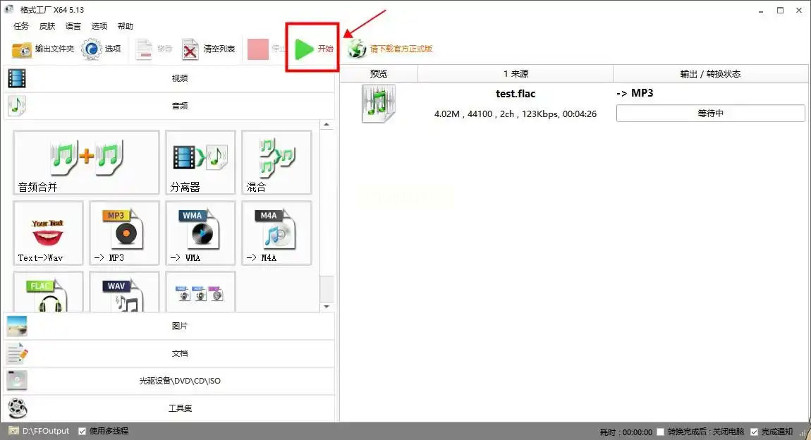 步骤三:点击主窗口上方的【开始】按钮,等待转换进度完成。