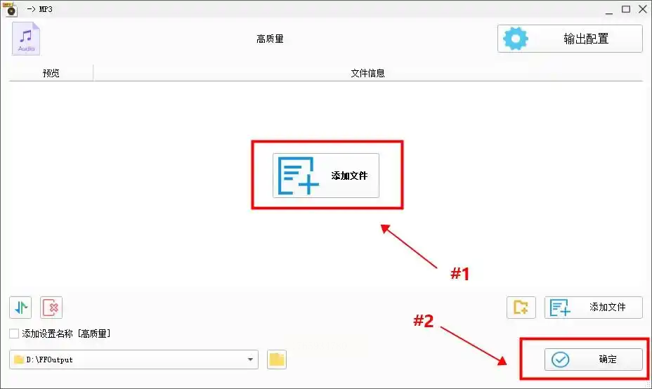 步骤二:点击【添加文件】按钮,上传m4a音频文件,完成后点击【确定】返回主界面。