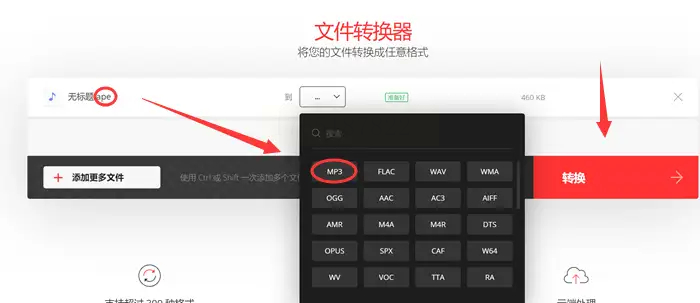 步骤一:打开Convertio网站,点击“选择文件”按钮,上传你的APE文件。注意,免费版本有文件大小限制。